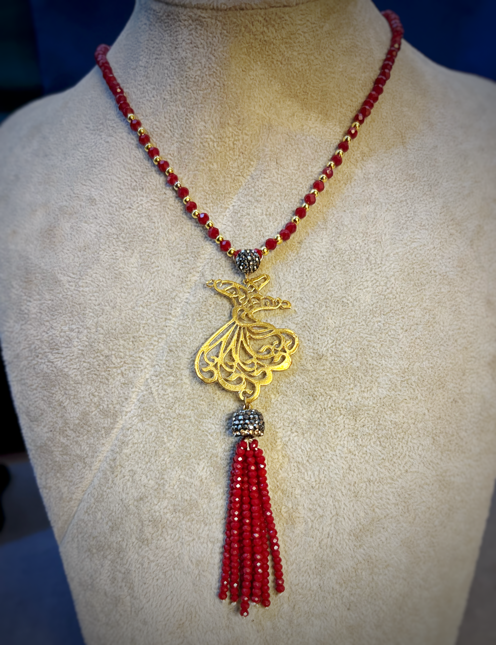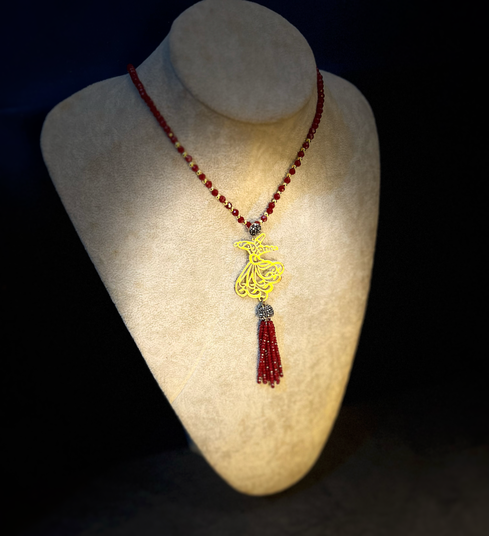 Whirling Dervish Necklace with Red Crystal Gems